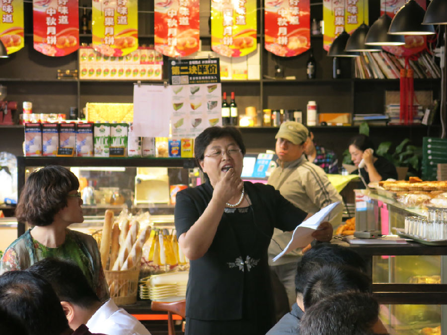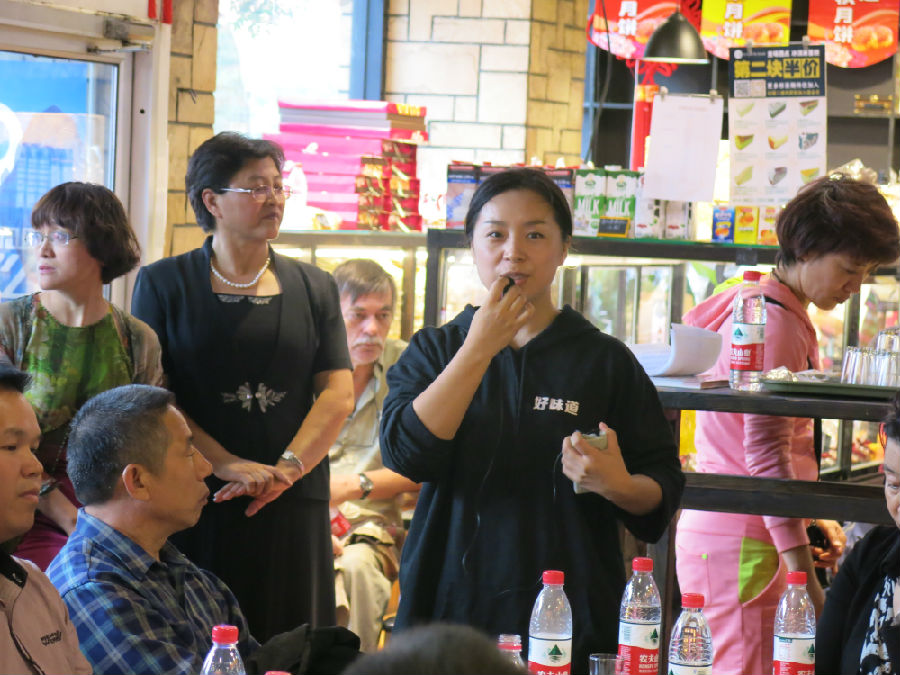 ▲賀亦芳主持月餅品嘗和產(chǎn)品推介